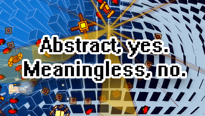 Seriously, Abstract? Described by its creator as an "album of musical abstract shmups", it's... well it's basically that. But there are hundreds of "abstract" shmups out there, many being created in such a style because their creators aren't quite sure what to do with visuals, or feel they can't create something more tangible, or perhaps they legitimately want to push the medium and visual style to complement the gameplay.
